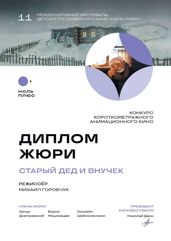 ДИПЛОМ ЖЮРИ анимационному фильму «Старый дед и внучек», режиссер Михаил Горобчук