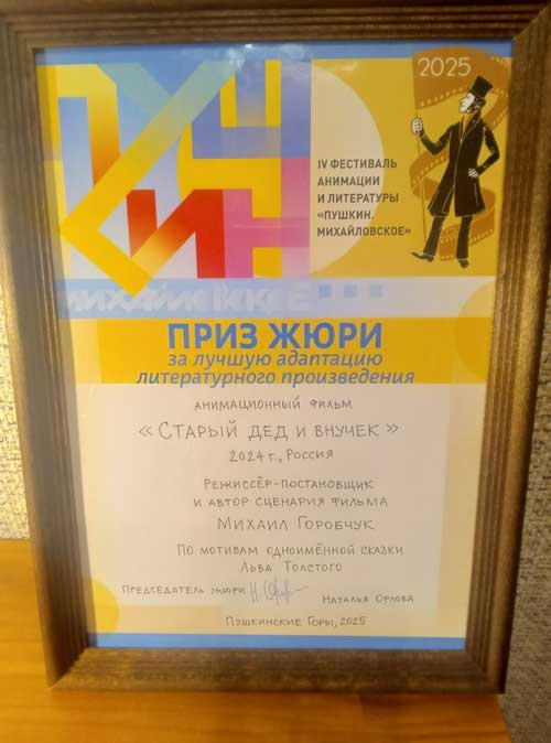 Продолжается триумфальное шествие по фестивалям анимационного фильма «Старый дед внучек», режиссер Михаил Горобчук. Пластилиновая анимация по мотивам известной притчи Льва Николаевича Толстого «Старый дед и внучек». Фильм об отношениях в семье и понимании старости, о важности личного примера в воспитании детей.